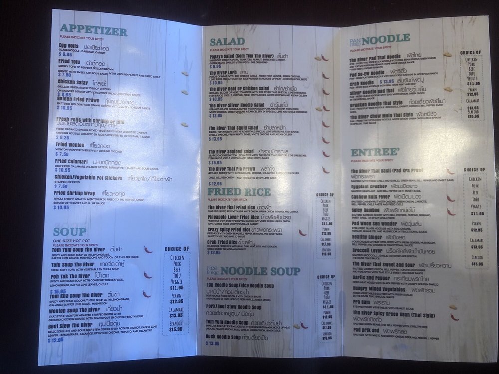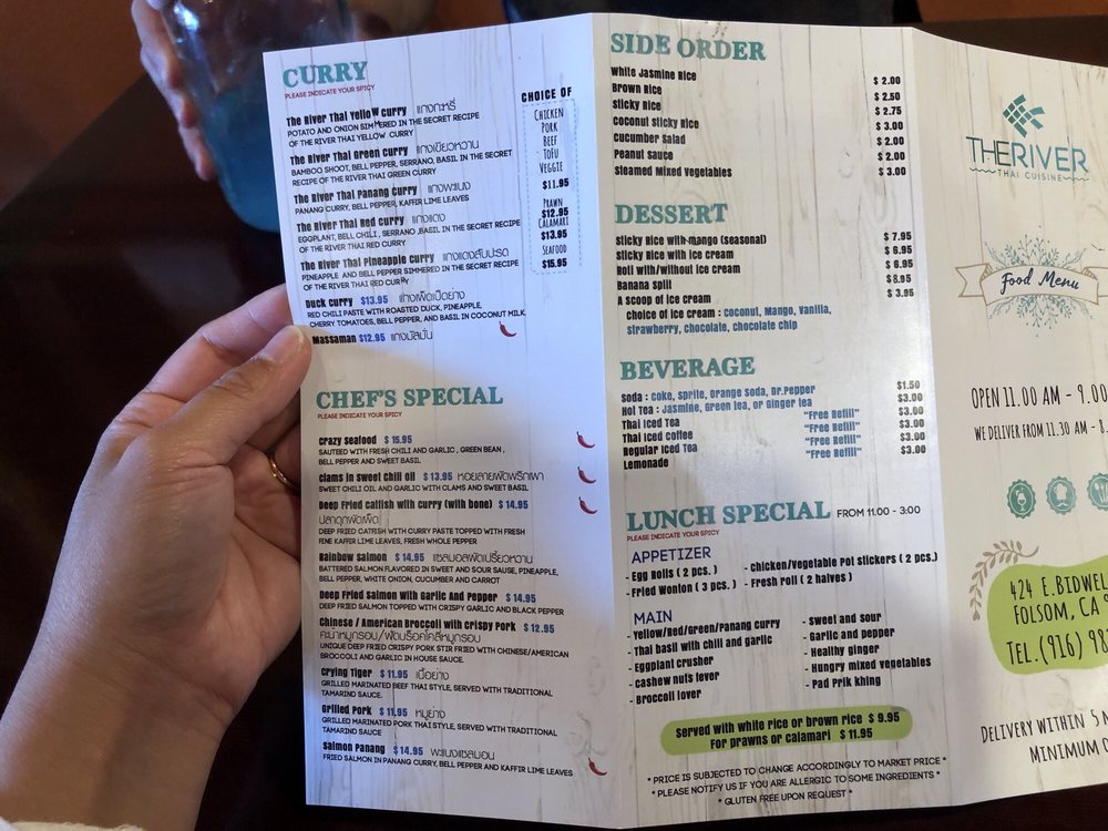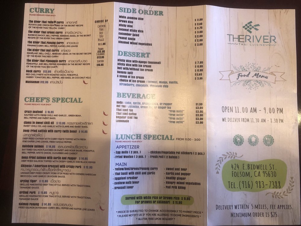 The River Thai Cuisine, located in Folsom, CA, offers a variety of Thai dishes with a focus on seafood and salads. The restaurant provides a range of amenities such as taking reservations, delivery, and catering services. Customers have praised the friendly staff and generous portions, although some mentioned changes to the menu. The ambiance is described as low-key, with a family-like atmosphere. Standout dishes include the satay and fried shrimp, with varying spice levels to cater to individual preferences. The Thai tea is a must-try, and the fresh rolls and curries are also highly recommended. While some customers noted minor inconsistencies, overall, The River Thai Cuisine is lauded for its authentic flavors and fresh ingredients. Visit for a satisfying Thai dining experience with a personal touch.